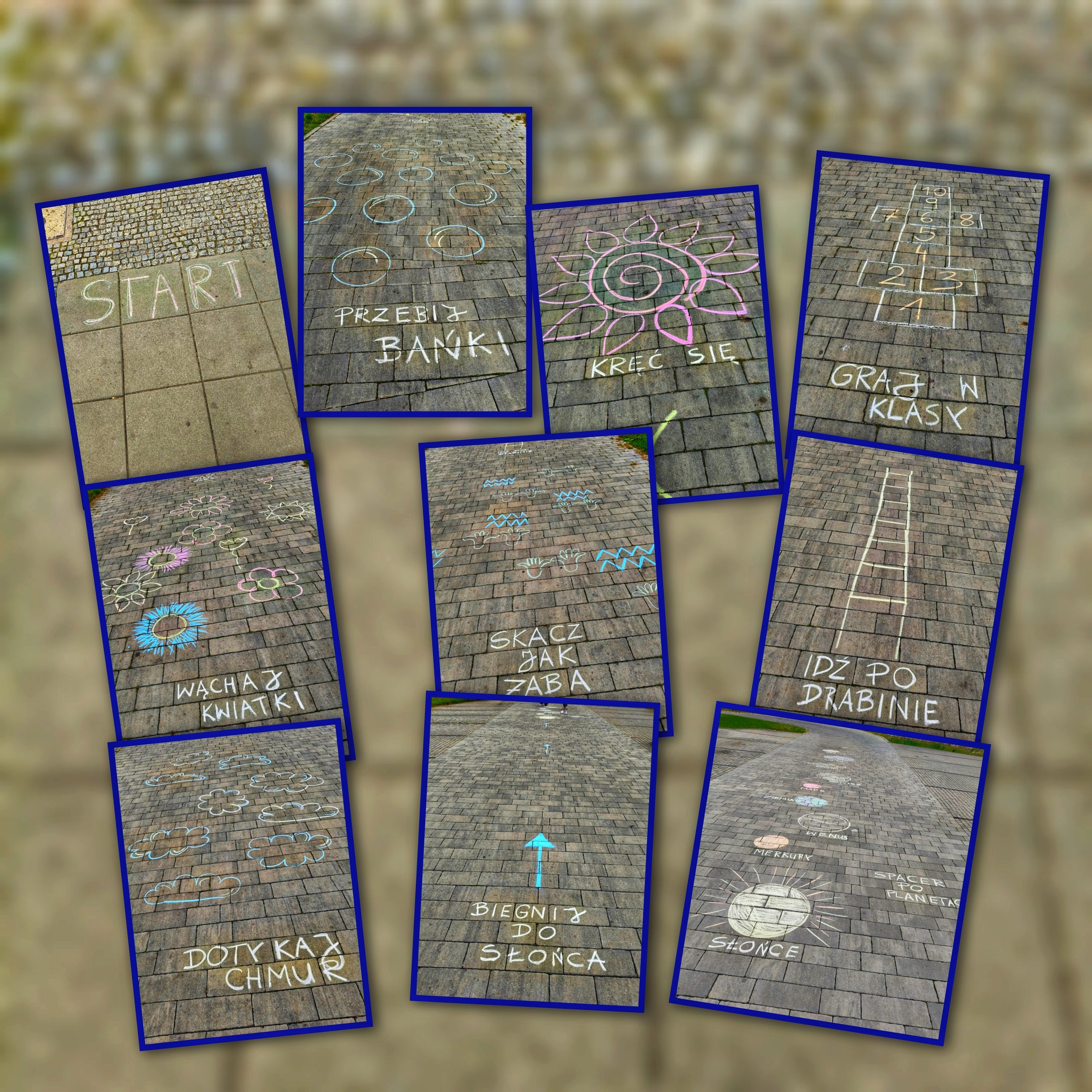 Przedszkolaki miały za zadanie dotrzeć do miejsca zawodów sportowych za pomocą strzałek i kolorowych szyfrów w okolicach przedszkola.