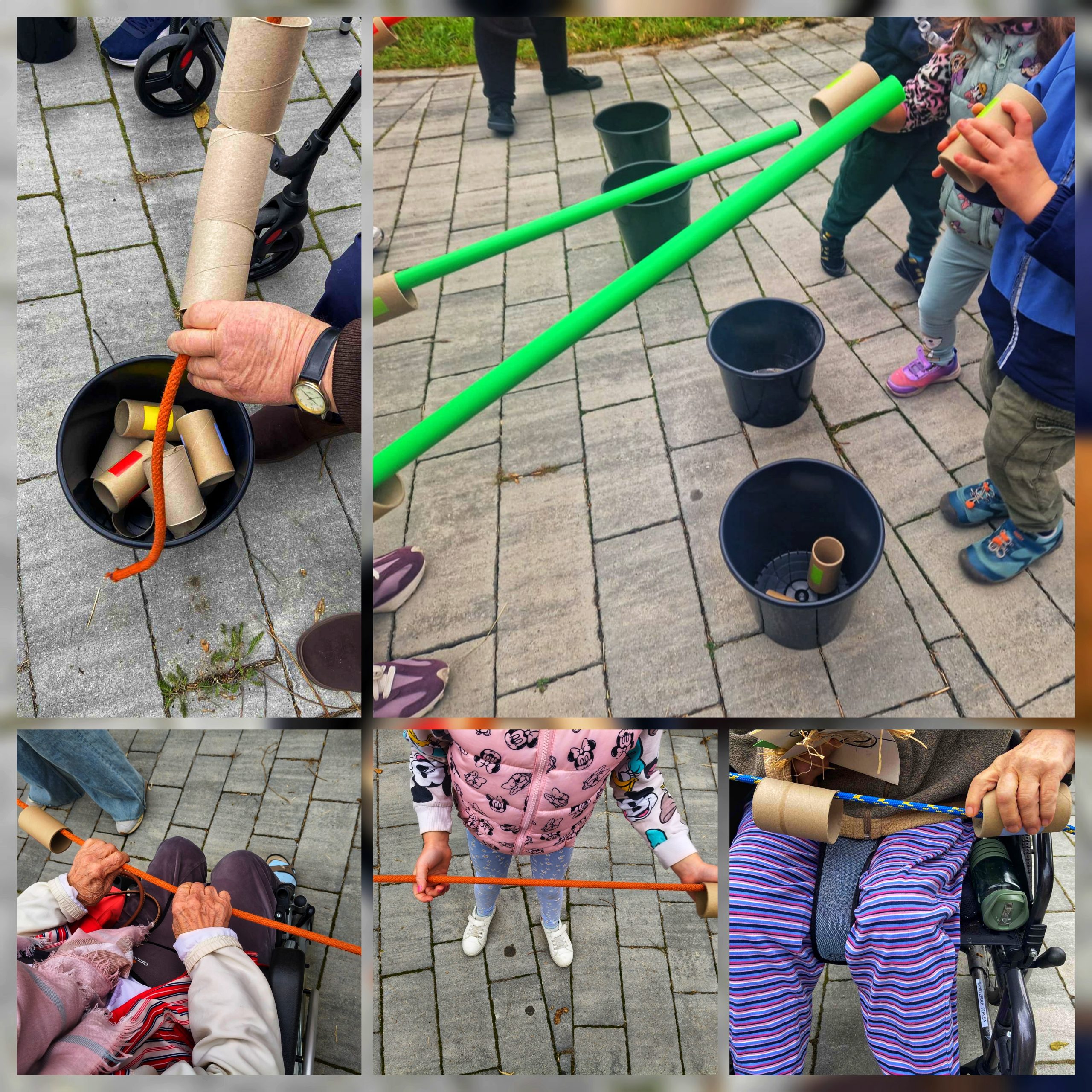 U celu na dzieci czekała załoga Tęczowego Domku ze specjalnymi gośćmi – Seniorkami i Seniorami z Domu Opieki „Rezydencja Jadwiga”, którzy aktywnie włączyli się we wszystkie przygotowane konkurencje.